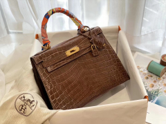 爱马仕 M1灰棕 栗子棕 金扣 kelly 28 亮光 nilo尼罗两点鳄鱼皮