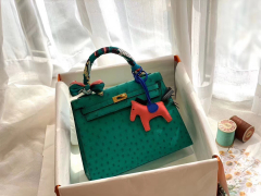 爱马仕 Kelly25 南非鸵鸟皮 Ostrich 6R薄荷绿 金扣 蜡线全手工 鸵鸟皮越用越有光泽