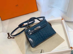 HERMES minikelly 二代 19亮光鳄鱼 鸭子蓝 银扣 美洲方块 蜡线纯手缝