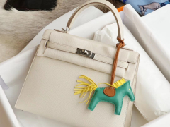 CC10奶昔白 银扣 Kelly25CM 专柜原厂Epsom皮 凯丽凯莉包 纯手缝蜡线缝制工艺