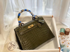 爱马仕 6H橄榄绿 金扣 kelly 28 亮光 nilo尼罗两点鳄鱼皮
