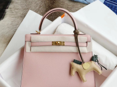 3Q樱花粉 金扣 Kelly25CM 专柜原厂Epsom皮 凯丽凯莉包 纯手缝蜡线缝制工艺
