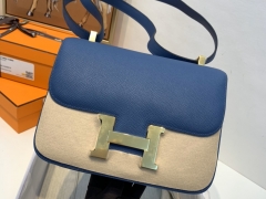 HERMES 爱马仕官网直销 订单 24 Constance Epsom 皮 玛瑙蓝拼海鸥灰 金扣