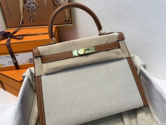 爱马仕 限量款 kelly 28cm 耐看帅气的款式 真的越看越好看 超级酷 Swift/Toile H 37-金棕色 金扣