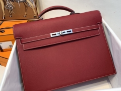 爱马仕 订单 kelly dapeche 男公文包 这款爱马仕手袋不管是搭配西装、还是休闲装 配合任何场所 都会显得非常帅气 Clemence皮 B5 宝石红 银扣
