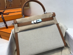 爱马仕 限量款 kelly 28cm 耐看帅气的款式 真的越看越好看 超级酷 Swift/Toile H 37-金棕色 银扣