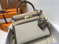 爱马仕 限量款 kelly 28cm 耐看帅气的款式 真的越看越好看 超级酷 Swift/Toile H 37-大象灰 金扣