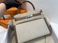 爱马仕 限量款 kelly 28cm 耐看帅气的款式 真的越看越好看 超级酷 Swift/Toile H 37-大象灰 银扣