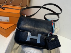 爱马仕 新到现货 constance 19cm lizard 蜥蜴皮 89黑色 银扣 专柜好几十万的配货 来我这帮你省下巨款!