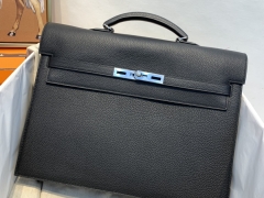 爱马仕 订单 kelly dapeche 男公文包 这款爱马仕手袋不管是搭配西装、还是休闲装 配合任何场所 都会显得非常帅气 Clemence皮 89黑色 银扣