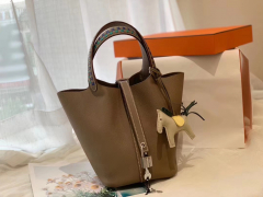 HERMES picotin lock 菜篮子 18 限量版编织拼接手柄 蜡线缝制 Epsom 18大象灰