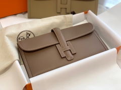 H家爱马仕香港官网 Jige 29cm 密蜡线缝制.swift皮 手包 中包 晚宴包 百搭款 CK18 大象灰