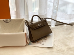 HERMES 爱马仕女包 mini kelly 二代 19cm espom 银扣 18大象灰 三大金刚色之一