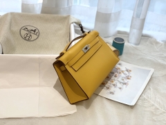 爱马仕 百搭首选 宴会手挽款 9D琥珀黄 银扣 22 mini kelly 一代/Kelly pochette 原厂御用 进口Swift皮 蜡线手缝工艺
