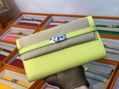 爱马仕官网 Kelly 经典钱包 epsom C9 鹅蛋黄 银扣