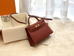 爱马仕HERMES 香港官网 必须拥有的小包包 mini kelly 二代 19cm espom 金扣 B3宝石红 特别有女人味