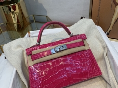 爱马仕高订 mini kelly 二代 Alligateor Rouse sheherazade 银扣
