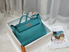 爱马仕香港官网 走秀款24/24 birkin和kelly完美结合 休闲气息 togo皮质 TF尼绿 银扣