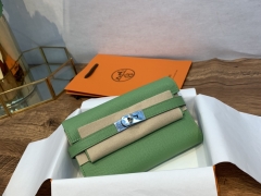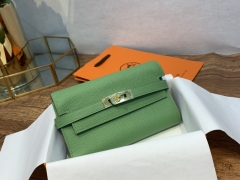 爱马仕官网 Kelly 经典钱包 epsom U4 丝绒绿 金扣