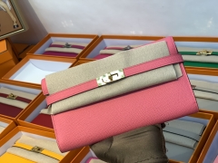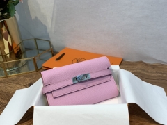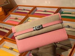 爱马仕官网 Kelly 经典钱包 epsom 9i 玉兰粉 银扣