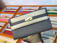 爱马仕官网 Kelly 经典钱包 epsom 8F 锡器灰 金扣