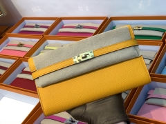 爱马仕官网 Kelly 经典钱包 epsom 9V 太阳黄 金扣