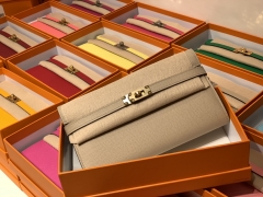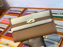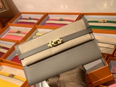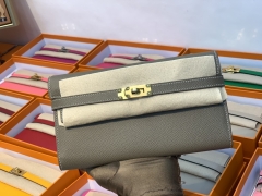 爱马仕官网 Kelly 经典钱包 epsom ck 18 大象灰 金扣