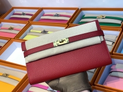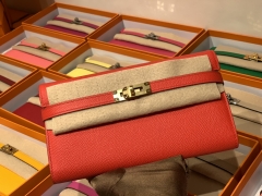 HERMES 爱马仕钱包官网 Kelly 经典钱包 epsom S3 心红 金扣