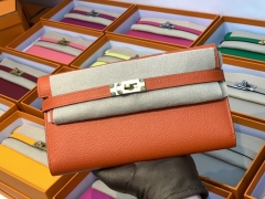 爱马仕官网 Kelly 经典钱包 epsom 93 橙色金扣