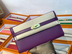 爱马仕官网 Kelly 经典钱包 山羊 P9 海葵紫 金扣