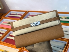 爱马仕官网 Kelly 经典钱包 epsom ck 37 土黄 金银扣